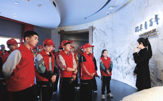 研学团学生在袁隆平水稻博物馆参观研学。